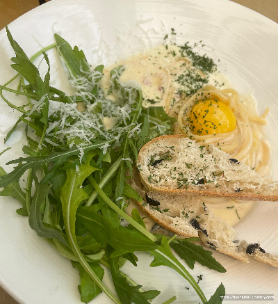 저희는 까르보나라와 팬케이크 스크램블 에그